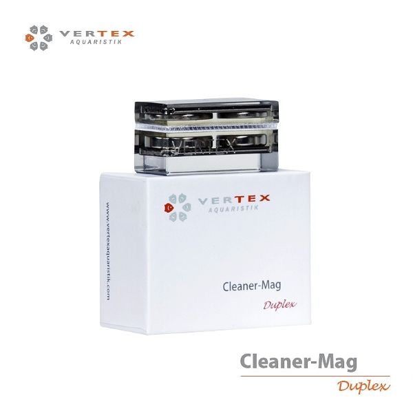 Vertex Cleaner Mag Duplex – up to 8mm. The Vertex Cleaner Mag Duplex is a magnetic cleaner designed for small/medium aquariums. The Vertex Cleaner Mag Duplex is a magnetic cleaner designed for small/medium aquariums. The outside-aquarium part has a unique round design made of clear acrylic around the magnet (including a small laser-etched Vertex fish logo). One side of the exterior is covered with white satin fabric. The inside-aquarium part is square in shape and is covered with a coarse white fabric for scraping algae.