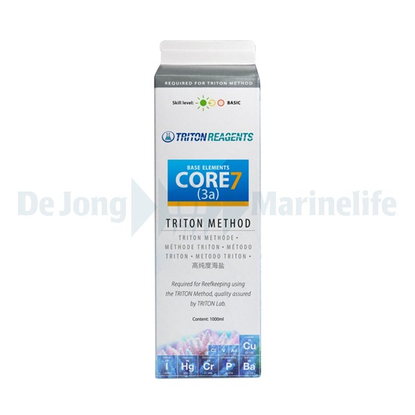 The Triton Core7 Base supplements 4 x 1000 ml were developed by Ehsan Dashti and are part of the Triton method. In short, this method is based on creating stable water values ​​by means of additives, filtering and testing. The additives are highly concentrated and contain all the important and minor trace elements to promote coral growth. The Core7 Reef supplements are easy to use. A set consists of 4 bottles of 1000 ml: ol Core7 Base element 1 Core7 Base element 2 Core7 Base element 3A Core7 Base element 3B /ol