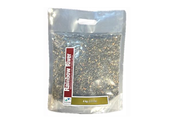 Rainbow River is a natural gravel bottom substrate for marine and freshwater aquariums providing an aesthetically appealing multicolored dark background that enhances the coloration of fishes, sessile invertebrates, and plants. Rainbow River also provides a high surface area for biological filtration, and has a naturally high mineral content that makes it ideal for freshwater planted aquariums. Directions: Rinse Rainbow River briefly with tap water then place on the bottom of the aquarium to the desired level. Contents: Multicolored miniature natural river pebbles.